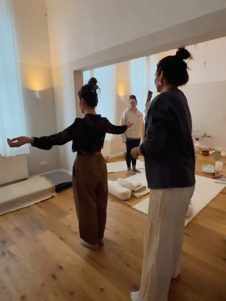 Ihre inspirierenden Sessions – ob im Einzelsetting, in der Gruppe, bei Firmenveranstaltungen oder in Ausbildungen – sind wie Rückzugsorte der Ruhe. Hier entstehen Räume, in denen die Kraft der Regeneration spürbar wird und die Schönheit der inneren Stille zum Vorschein kommt.